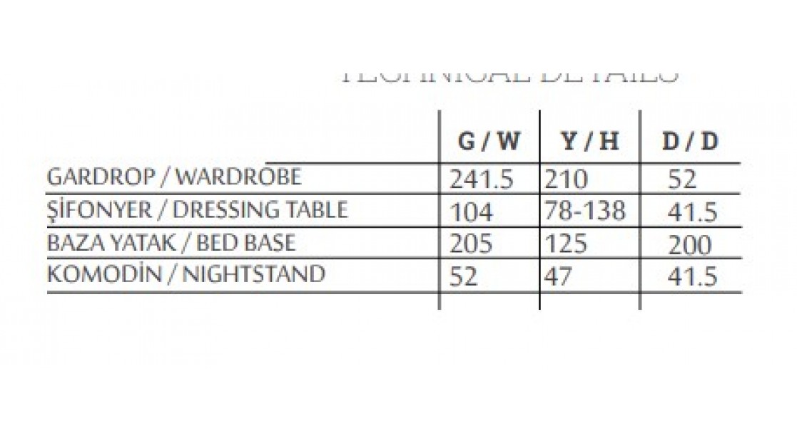 * Dolap, Şifonyer, Komodin, Karyola şeklinde fiyatıdır.